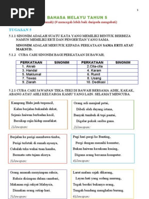 Bahasa Melayu Tahun 5 Tugasan 5 Jawapan Tugasan2 Pdf